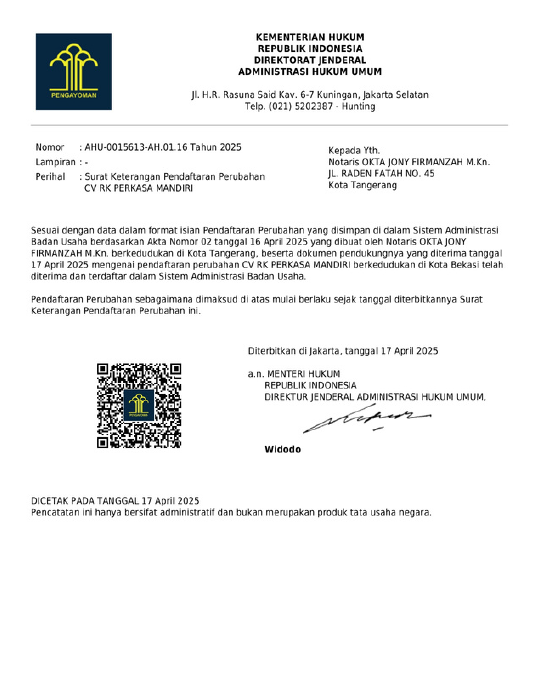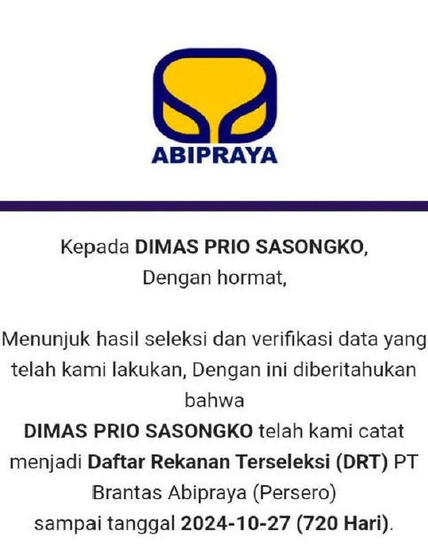 Daftar Rekanan Terseleksi - PT Brantas Abipraya